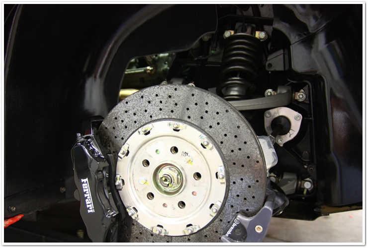 Rotile fiind scoase, am inceput procesul complet de detailing a zonei de rulare si a tuturor componentelor franelor si suspensiilor. Trebuie sa ai mare grija atunci cand lucrezi in jurul rotoarelor franelor de carbon, deoarece unele produse de curatare le pot deteriora. Avand in vedere acest lucru, am ales sa lucrez cu P21S Wheel Gel cu PH neutru in zona etrierelor, si cu P21S TAW in restul zonelor. Aceasta sarcina ia ceva timp, si este o treaba murdara, insa cand faci un proces de detailing la acest nivel, poti la fel de bine sa cureti, reconditionezi si protejezi aceste zone in acelasi timp. Poza de mai jos este dupa ce suspensia/frana au trecut printr-un proces de detailing complet.