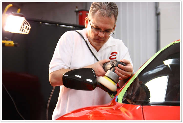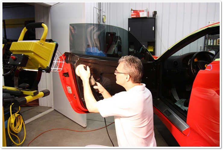 Cam in acest moment al procesului de detailing, proprietarul a facut inca o lunga calatorie inapoi pentru a vedea daca se fac progrese (trecuse in jur de o saptamana de cand masina fusese trimisa). A dus cu el niste prieteni si cativa membri ai familiei, si i-am pus pe toti sa se uite cu lumina cu halogen…o portiune fusese lustruita iar cealalta imediat langa ea era inca zgariata. Se dadeau in fata si in spate uitandu-se la portiunea lustruita si apoi la cealalta, si nu puteau sa creada ca deja se vedea o diferenta atat de mare. Le-am spus sa astepte inainte de a trage vreo concluzie, pentru ca inca nu au vazut nimic. Masina inca mai avea o gramada de transformari de primit inainte de a face o inspectie critica.