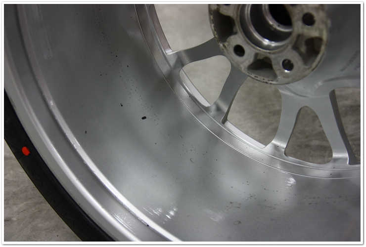 Acum ca suprafata vopselii a fost finisata, am trecut la roti pentru a fi sigur ca sunt curatate si protejate de asemenea. Dupa curatarea temeinica a rotilor cu P21S Wheel Gel, le-am inspectat pentru a gasi acumulari de bitum, de cauciuc si de reziduuri ocazionale lasate de greutatea rotilor anterioare.