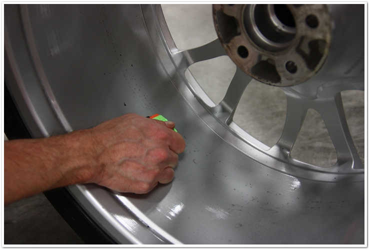 Felul in care am curatat contaminarile de pe roti este acela de a folosi o simpla lama de razuit din plastic. Indeparteaza in siguranta cel putin majoritatea impuritatilor lipite fara a strica suprafata rotilor.