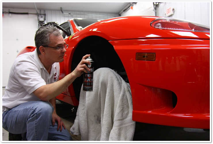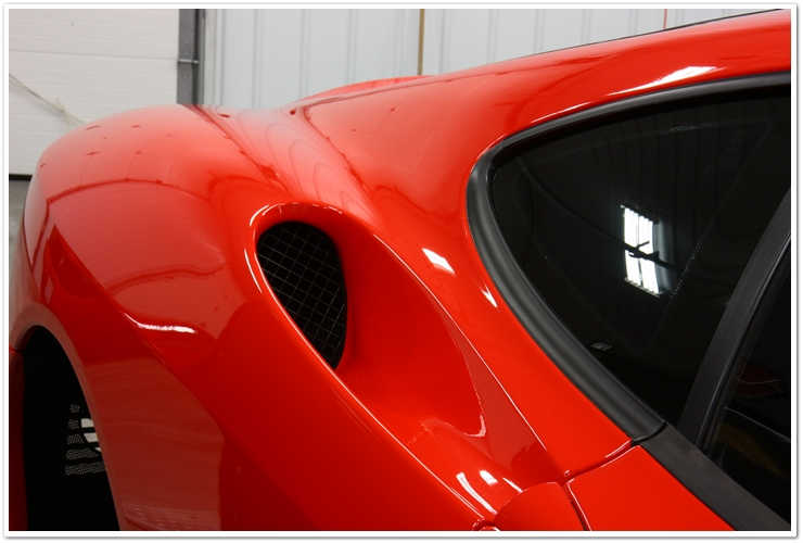 Proprietarul acestei masini este un tip extraordinar, si este la fel de pasionat de masini (in mod special de Ferrari) asa cum vin. A avut mai multe modele de Ferrari inainte de acesta, insa imi puteam da seama cu usurinta ca astepta acest Stradale de ceva vreme! Acest vehicul a fost cumparat din California, si transportat de-a lungul tarii pana in Ohio. Deoarece proprietarului nu i-a fost livrata inca, a trebuit sa o trimita de pe coasta de vest direct la NJB Automotive, aici, in Columbus. Pentru cei care nu mi-au citit cateva dintre articolele precedente despre Ferrari, NJB este un centru service special pentru Ferrari (si Lamborghini), iar eu (Esoteric Auto Detailing) manageriez toate procesele de detailing si toate restaurarile de vopsea din cadrul facilitatilor acestora. Este o relatie nemaipomenita intre cele doua companii, si este o oportunitate extraordinara pentru clienti, din moment ce pot rezolva promele mecanice cat si pe cele de detailing intr-o singura vizita. Acum ca am facut o reclama nerusinata celor de la NJB, sa continui cu povestea…