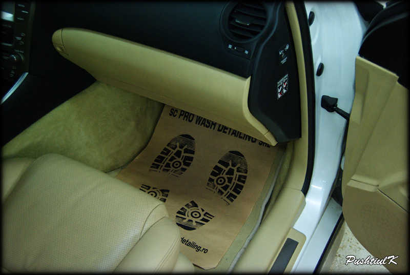 A mai trecut o saptamana, o saptamana foarte incarcata, in care am avut 5 masini programate pentru detailing interior. Una dintre acestea a fost un superb Lexus IS250. Lexus este gama de lux a producatorului nipon de automobile Toyota. Lexus IS250 este propulsat de un motor V6 de 2.5 litri ce dezvolta o putere de 208 cp si 252 Nm. Aceasta putere este dezvoltata cu ajutorul unui consum de doar 10 litri / 100 km (consum urban). Interiorul este foarte luxos si tehnologizat (japonezii – parintii tehnologiei). Masina a fost adusa seara la garaj, unde dupa o inspectie rapida, am trecut la fotografierea interiorului. Interiorul in starea initiala:
