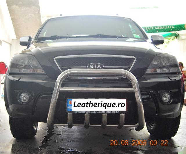Ieri am cosmetizat un Kia Sorento. A fost prima masina de teren al carui interior l-am curatat.  Interiorul era intr-o stare de neimaginat. Tapiteria a iesit foarte bine, dar unele plastice si mocheta din masina si din portbagaj nu am reusit sa le aduc la starea initiala, cu toate ca am folosit si Mafra Pulimax si Meguiars APC (dilutie 4:1), si frecat cu peria aprox 30-40 de min numai la portbagaj. Am fost multumit de piele (puteti observa in poza portiunea curatata si cea plina de impuritati), dar de mocheta nu. Cred ca imi trebuia niste TIX.