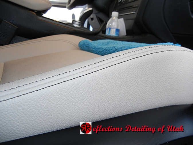Daca aveti scaune din piele deschise la culoare, mai devreme sau mai tarziu vor avea pete de la blugi. Acest lucru presupune ca vopseaua blugilor va intra in primul strat de vopsea al pielii. Leatherique Prestine Clean poate avea rezultate uimitoare in curatarea petelor de blugi de pe piele. Aici la Reflections Detailing of Utah am cativa clienti care au aceasta problema destul de des in decursul unui an de zile. Adesea, detaileri neexperimentati incearca sa indeparteze aceste pete prin procese chimice care sunt destul de dure pentru piele, sau incearca metode abrazive sau foarte uleioase. Altii incearca sa utilizeze caldura si/sau sa scoata petele din vopsea cu ajutorul aburului. Toate aceste metode, ca prime incercari, sunt mult prea agresive si, de fapt, ele nu fac decat sa introduca vopseaua si mai mult in piele.