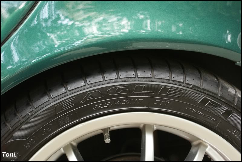 Destul de bine zic eu. Aici este putin lucios pentru ca nu am mai sters anvelopele dupa aplicare. Dar daca se sterge usor dupa aplicare arata mai mat, satinat. Ca durabilitate sta foarte bine as spune. Dupa 1500km anvelopele inca aratau bine. E drept ca peste 1000km au fost facuti pe autostrazi, dar totusi este un punct forte. A rezistat bine si la umiditate si in timp. Anvelopa fata dupa 1500km, inclusiv pe vreme umeda. Dupa aplicare am sters anvelopele pentru un look mai mat, de aceea pozele pot parea foarte diferite fata de primele, unde doar am aplicat produsul.